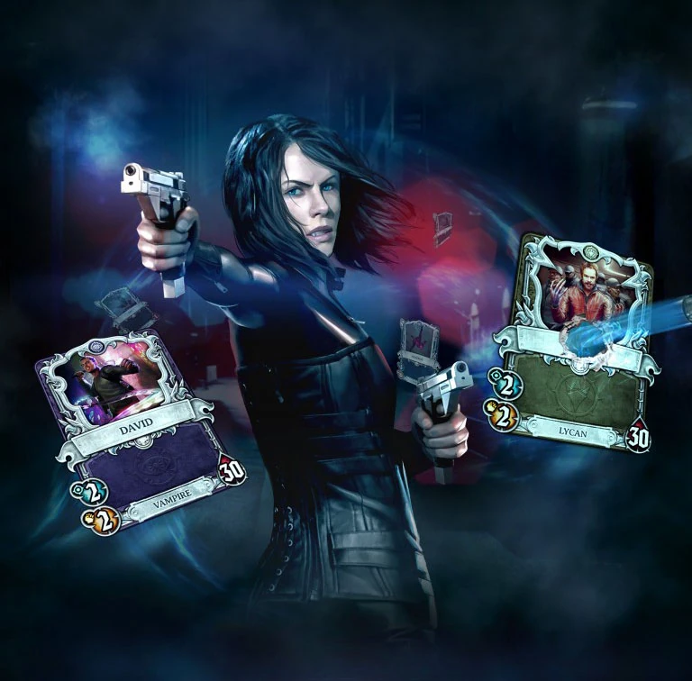 Plusieurs personnages de Underworld : Nouvelle Ère et Underworld : Blood Wars ont leurs propres cartes tels que : Eve, Thomas, Jacob Lane, Olivia, Varga, Istvan, Hajna, Cassius, Dr. Lida, Edward Vronski, Infirmière Sebastian, Lena, Vidar, Alexia et le PDG d'Antigen. Amélia est également mentionnée dans une carte appelée "Portrait d’Amélia"—le même portrait qui apparaît dans Underworld : Blood Wars.