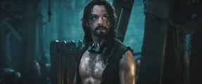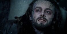 Lucian in front of a kidnapped member of the Corvinus Clan.